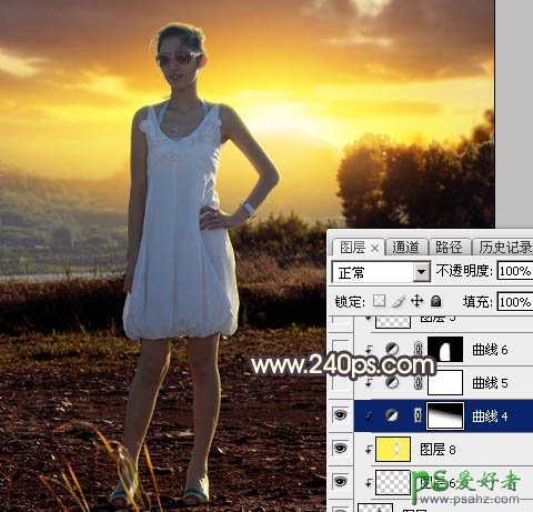 Photoshop给穿吊带裙的漂亮美女外拍写真照片调出唯美的逆光效果
