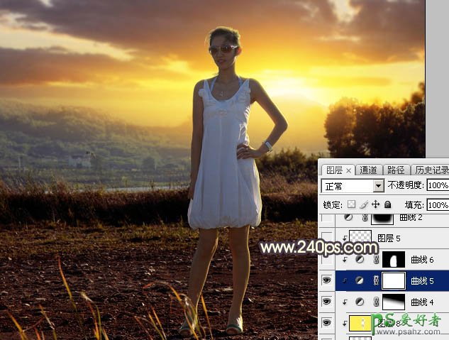 Photoshop给穿吊带裙的漂亮美女外拍写真照片调出唯美的逆光效果