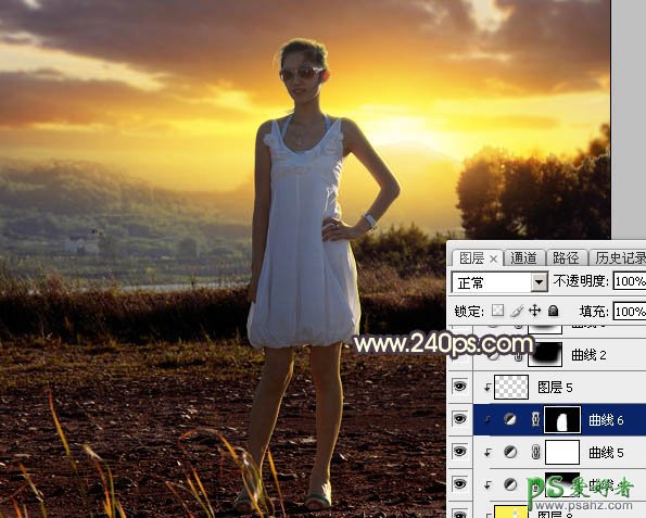 Photoshop给穿吊带裙的漂亮美女外拍写真照片调出唯美的逆光效果