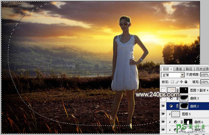 Photoshop给穿吊带裙的漂亮美女外拍写真照片调出唯美的逆光效果