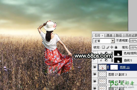 18、把背景图层复制一层,按Ctrl + Shift + ] 置顶,用钢笔工具把人物部分抠出来,转为选区后添加图层蒙版,效果如下图。