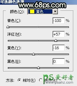 PS女生照片调色:给美丽田野上的漂亮女生写真照调出柔美的青黄色,效果图调色的时候把天空与草地分开调;后期再把颜色处理的溶和一些即可。 原图 最终效果 1、打开原图素材大图,创建可选颜色调整图层,对黄、绿、白进行调整,参数设置如图1 - 3