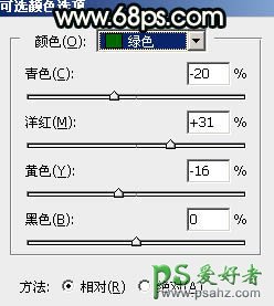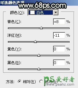 1、打开原图素材大图,创建可选颜色调整图层,对黄、绿、白进行调整,参数设置如图1 - 3,效果如图4。这一步快速把草地颜色转为橙红色。