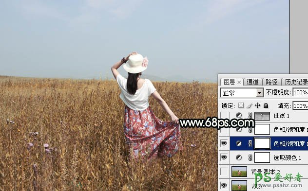 PS女生照片调色:给美丽田野上的漂亮女生写真照调出柔美的青黄色