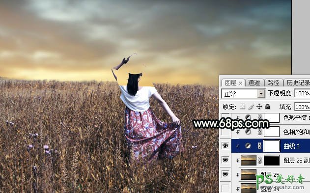 11、创建曲线调整图层,对RGB、红、绿、蓝通道进行调整,参数设置如图23 - 26,确定后创建剪切蒙版,效果如图27。这一步增加天空部分的明暗对比,并减少红色,增加绿色。