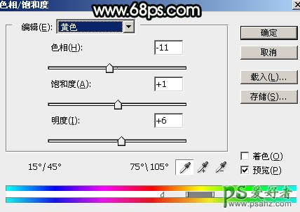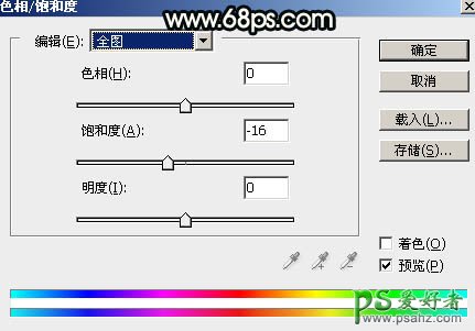 12、创建色相/饱和度调整图层,对全图、黄、绿色进行调整,参数设置如图28 - 30,确定后创建剪切蒙版,效果如图31。这一步主要减少天空部分的暖色。