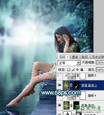 14、把背景图层复制一层,按Ctrl + Shift + ] 置顶,用钢笔工具把人物脸部及肤色部分抠出来,转为选区后添加图层蒙版,效果如下图。