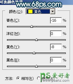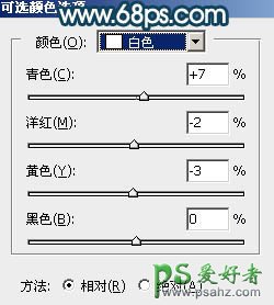 16、创建可选颜色调整图层,对红、黄、白进行调整,参数设置如图32 - 34,确定后创建剪切蒙版,效果如图35。这一步把人物肤色调红润一点。