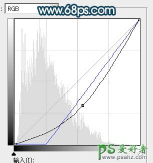 18、创建曲线调整图层,对RGB,蓝通道进行调整,参数设置如图38,确定后把蒙版填充黑色,然后用柔边白色画笔把左侧及底部区域涂暗一点,效果如图39。这一步给图片增加暗角。
