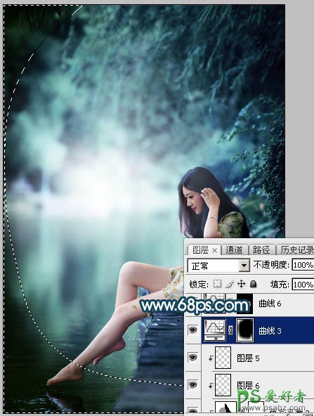 Photoshop给清纯玉腿美脚女神艺术写真图片调出梦幻唯美的青绿色