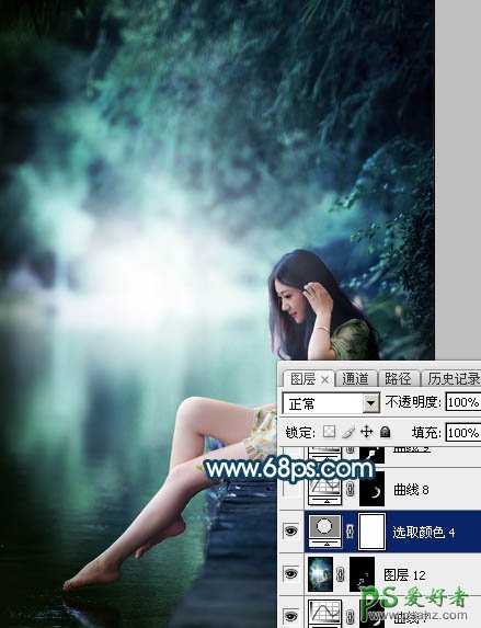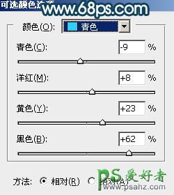 21、创建可选颜色调整图层,对青色进行调整,参数及效果如下图。这一步把图片中的青色调暗一点。
