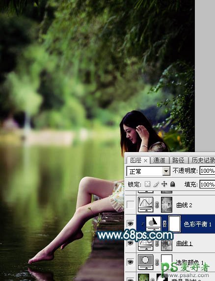 4、创建色彩平衡调整图层,对阴影、中间调、高光进行调整,参数设置如图9 - 11,确定后按Ctrl + Alt + G 创建剪切蒙版,效果如图12。这一步同样给图片暗部增加蓝色。