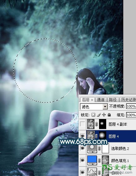 8、现在我们来渲染烟雾效果 新建一个图层,按字母键“D”把前,背景颜色恢复到默认的黑白;然后选择菜单:滤镜 > 渲染 > 云彩,确定后把混合模式改为“滤色”;按住Alt键添加图层蒙版,用透明度较低的柔边白色画笔把中间区域涂亮一点。