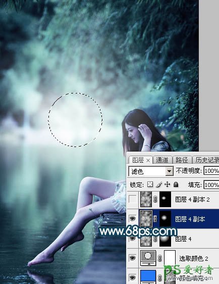 9、按Ctrl + J 把当前云彩图层复制一层,然后把蒙版填充黑色,再用透明度较低的柔边白色画笔把下图选区部分涂亮一点。
