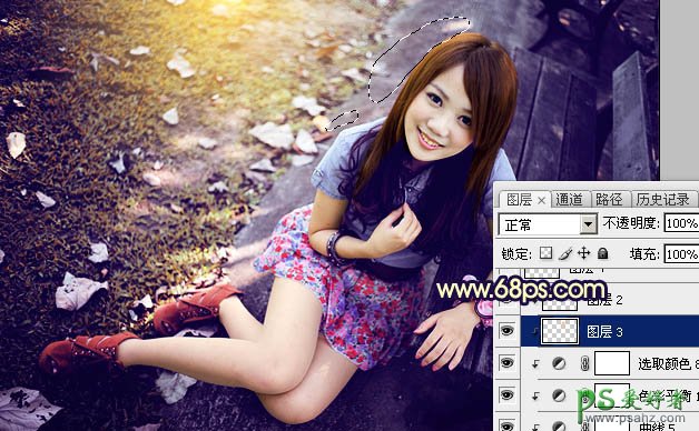 PS美女图片调色教程:给清新草地上可爱女孩生活照调出偏冷的淡紫