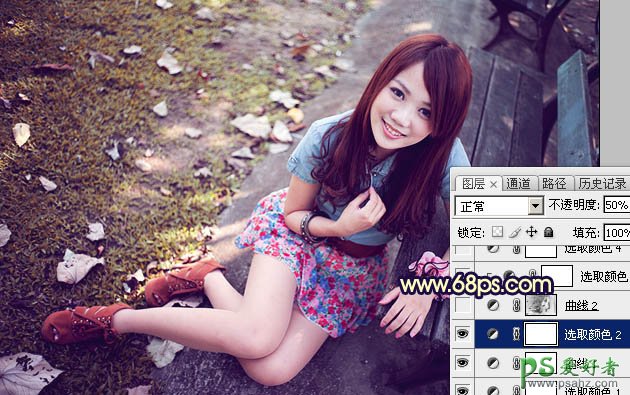 PS美女图片调色教程:给清新草地上可爱女孩生活照调出偏冷的淡紫