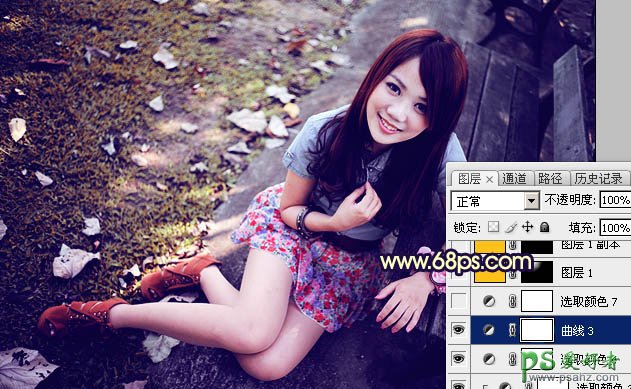 PS美女图片调色教程:给清新草地上可爱女孩生活照调出偏冷的淡紫