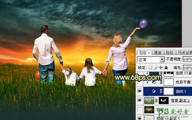 20、创建曲线调整图层,对RGB、红、绿通道进行调整,参数设置如图37,确定后创建剪切蒙版,效果如图38。这一步把人物调暗一点。