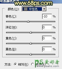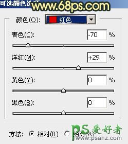 6、创建可选颜色调整图层,对红、黄、中性色进行调整,参数设置如图16 - 18,确定后按Ctrl + Alt + G 创建剪切蒙版,效果如图19。这一步同样给高光部分增加橙黄色。