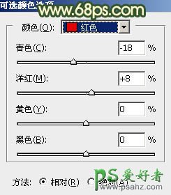19、创建可选颜色调整图层,对红、白、中性、黑进行调整,参数设置如图43 - 46,效果如图47。这一步主要给图片暗部增加青绿色。
