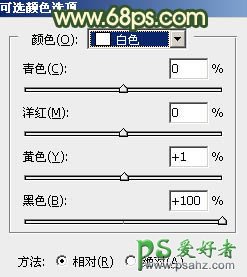 7、创建可选颜色调整图层,对白色,中性色进行调整,参数设置如图20,21,确定后把蒙版填充黑色,用白色柔边画笔把人物裙子部分擦出来,效果如图22。这一步主要把裙子高光调暗。