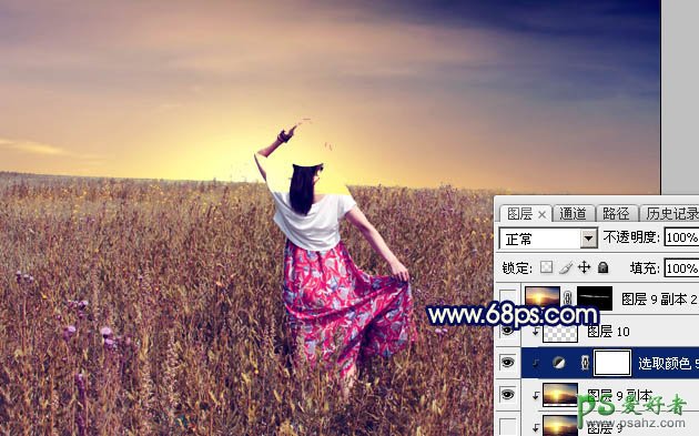 PS美女照片美化教程:给田园中的唯美少女写真图片调出绚丽的紫褐