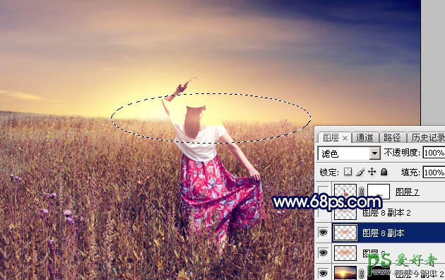 12、按Ctrl + J 把当前图层复制一层,混合模式改为“滤色”,再按Ctrl + T 稍微缩小一点,效果如下图。