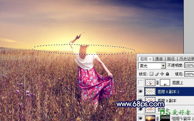 13、按Ctrl + J 把当前图层复制一层,混合模式改为“柔光”,按Ctrl + T 稍微压扁一点,效果如下图。
