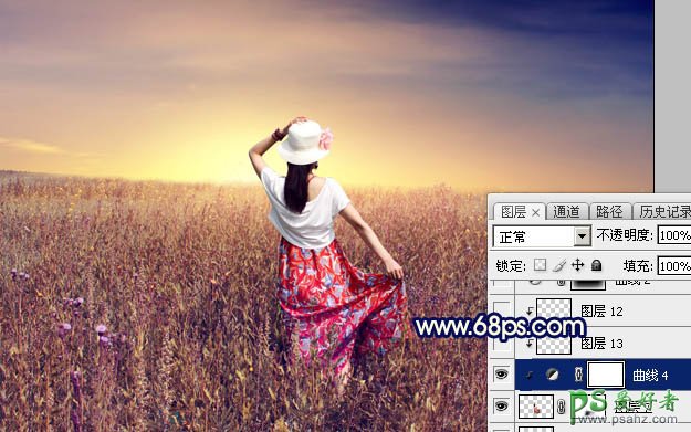 15、创建曲线调整图层,对RGB、红、绿、蓝通道进行调整,参数设置如图32,确定后创建剪切蒙版,效果如图33。这一步把人物部分稍微调暗一点。