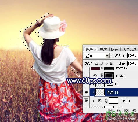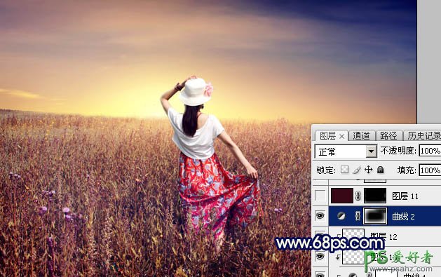 17、创建曲线调整图层,对RGB通道进行调整,参数设置如图35,确定后把蒙版填充黑色,再用白色画笔把边角部分擦出来,效果如图36。这一步给图片增加暗角。