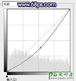 19、创建曲线调整图层,对RGB通道进行调整,参数设置如图38。确定后把蒙版填充黑色,再用透明度较低柔边画笔把人物背光区域涂出来,效果如图39。