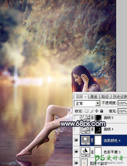 20、用曲线把人物背光区域调暗一点,再给图片增加暗角,效果如下图。