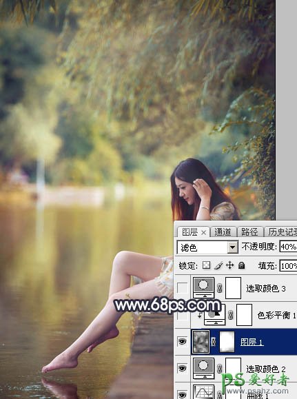 4、新建一个图层,按字母键“D”把前,背景颜色恢复到默认的黑白。选择菜单:滤镜 > 渲染 > 云彩,确定后把混合模式改为“滤色”,不透明度改为:40%。添加图层蒙版,用透明度较低的柔边黑色画笔把底部及顶部需要变暗的部分擦出来,如下图。这一步给图片增加烟雾效果。