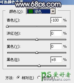 6、创建可选颜色调整图层,对红、黄、绿进行调整,参数设置如图20 - 22,效果如图23。这一步给图片增加橙红色。