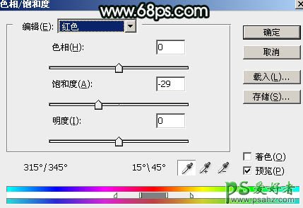 8、创建色相/饱和度调整图层,对全图、红、黄进行调整,参数设置如图19 - 21,确定后按Ctrl + Alt + G 创建剪切蒙版,效果如图22。这一步把肤色转为中性色。