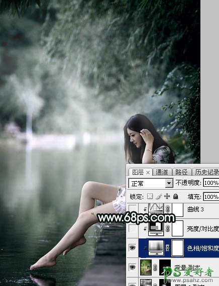 PS美女图片后期调色教程:打造诗情画意般柔美少女古典暗绿色效果