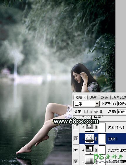 PS美女图片后期调色教程:打造诗情画意般柔美少女古典暗绿色效果
