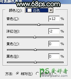 11、创建可选颜色调整图层,对红色,白色进行调整,参数设置如图27,28,确定后创建剪切蒙版,效果如图29。这一步给肤色增加红色。