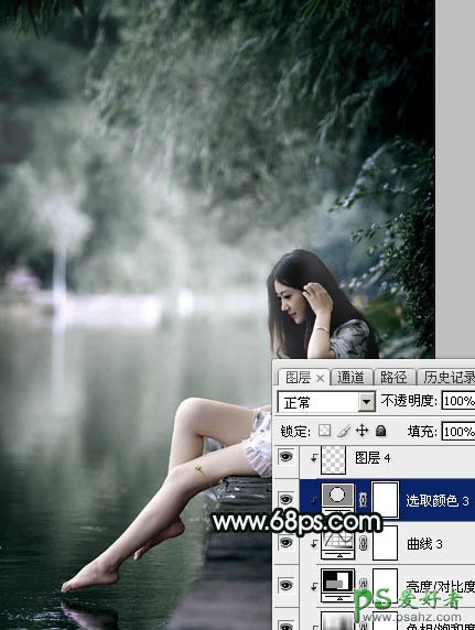 PS美女图片后期调色教程:打造诗情画意般柔美少女古典暗绿色效果