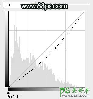 17、创建曲线调整图层,把RGB通道稍微调暗一点如图37,确定后把蒙版填充黑色,再用白色画笔把人物背光区域擦出来,如图38。