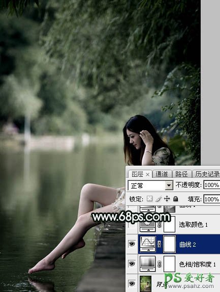 PS美女图片后期调色教程:打造诗情画意般柔美少女古典暗绿色效果