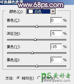 10、创建可选颜色调整图层,对白色进行调整,参数设置如图22,确定后创建剪切蒙版,效果如图23。这一步给天空部分增加淡蓝色。