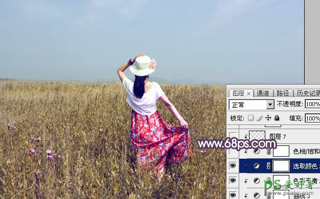 PS调色教程:给清爽的花裙子韩系美少妇外景写真图片调出淡冷色秋季效果,这张草原上的美少妇风景照色彩清新唯美,我们设计师通过后期调色美化及润色让照片变得更加漂亮,喜欢的朋友们认真学习一下吧!原图 最终效果 1、打开原图素材大图,创建可选颜色