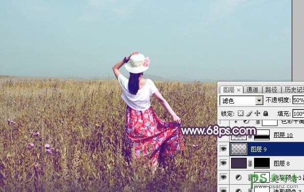 15、按Ctrl + Alt + 2 调出高光选区,按Ctrl + Shift + I 反选得到暗部选区,然后创建纯色调整图层,颜色设置为暗蓝色:#40304B,确定后把混合模式改为“滤色”,不透明度改为:50%,如下图。这一步把暗部稍微调亮,并增加蓝色。