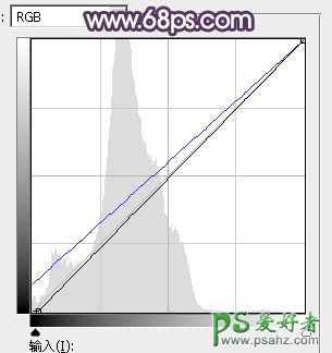 24、按Ctrl + Alt + 2 调出高光选区,按Ctrl + Shift + I 反选得到暗部选区,然后创建曲线调整图层,对RGB,蓝通道进行调整,参数及效果如下图。这一步把图片暗部稍微调暗,并增加蓝色。