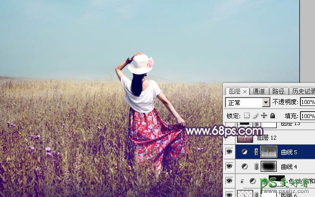 最后盖印图层,用模糊工具把远处的背景模糊处理,再给图片增加光晕,加强一下局部明暗,完成最终效果。