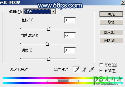15、创建色相/饱和度调整图层,对全图,红色进行调整,参数设置如图31,32,确定后创建剪切蒙版,效果如图33。这一步适当降低肤色饱和度。