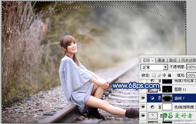 20、创建曲线调整图层,对RGB通道进行调整,参数设置如图41,确定后把蒙版填充黑色,再用白色画笔把边角区域擦出来,效果如图42。这一步给图片增加暗角。