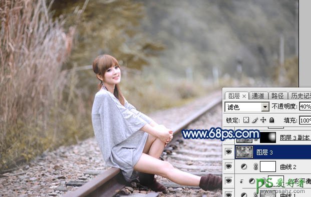7、新建一个图层,按字母键“D”把前,背景颜色恢复到默认的黑白,然后选择菜单:滤镜 > 渲染 > 云彩,确定后把混合模式改为“滤色”,不透明度改为:40%,效果如下图。