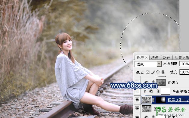8、按Ctrl + J 把当前云彩图层复制一层,不透明度改为:100%,按住Alt键添加图层蒙版,用透明度较低的柔边白色画笔把下图选区部分擦出来。这两步给图片增加烟雾效果。